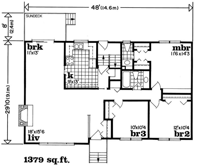 Half wall visually separates the foyer and living room. Fireplace and picture window are featured in the spacious living room. U-shaped kitchen conveniently serves the dining room, with access to rear deck.