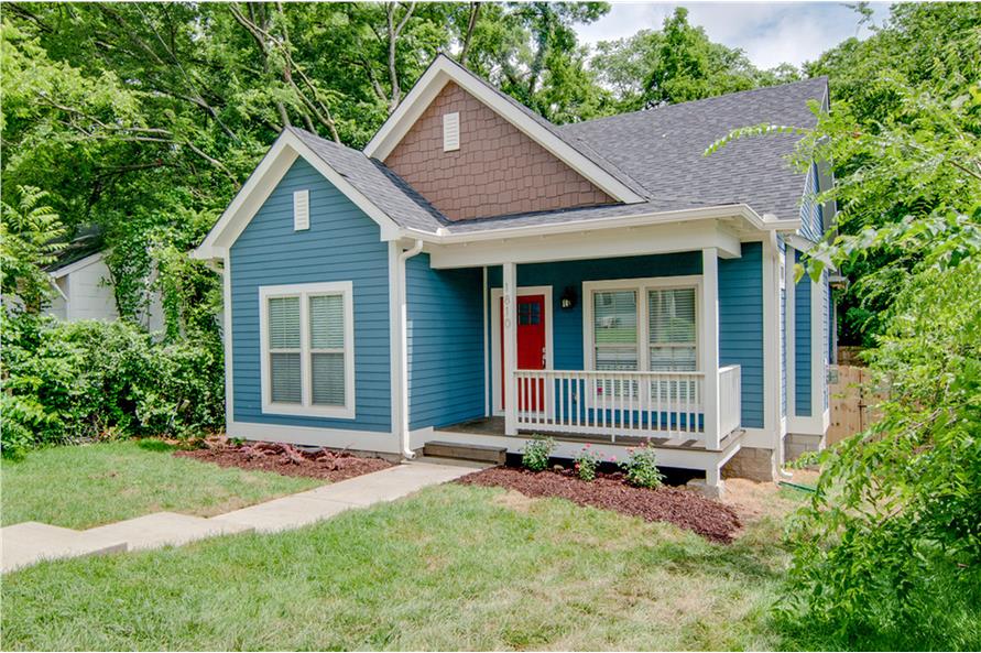 This well-done bungalow style home (House Plan # 142-1055) has over 1390 square feet of living space. The one story floor plan includes 3 bedrooms and 2 bathrooms. The exterior of this home has an appealing covered front porch. Inside, this house design's open floor plan also includes an attractive main floor master bedroom suite.