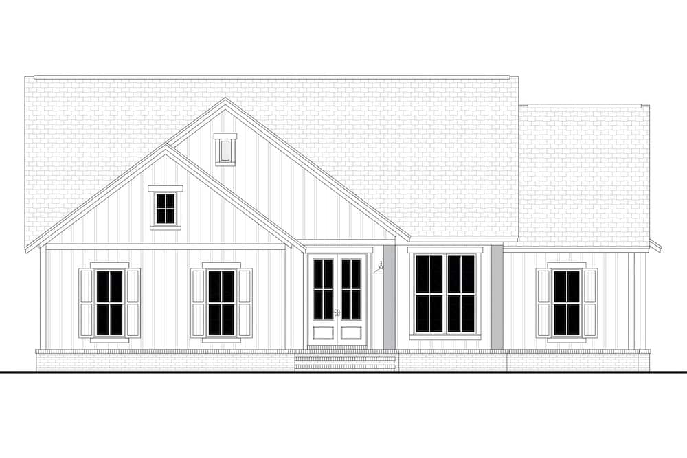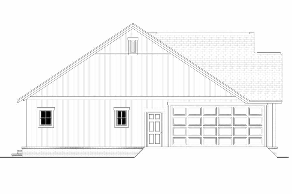 This transitional ranch-style house fits perfectly on a corner lot, with the front facing the main road and the side with the car entrance facing the intersecting street. Its vertical wood siding, oversize windows, and steep roof give the home great curb appeal. The gorgeous home's one-story floor plan has 1398 square feet of heated and cooled living space and three bedrooms.
