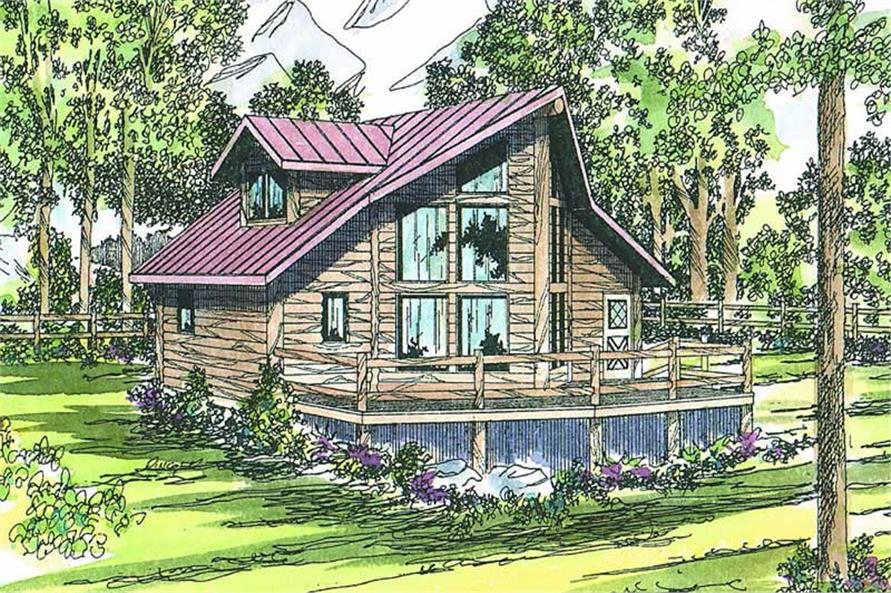 With 1401 total living square feet, this compact, contemporary A-frame, lodge style log home is designed as a vacation retreat. The window-bright, partially vaulted living room faces the wide deck. The master suite has a large walk-in closet and a small sitting area in the dormer.