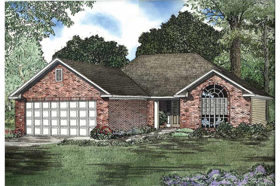 The boxed column entry and a lovely round-topped window help to give this Nelson Design Group home excellent street appeal. Once inside, the foyer ushers you and your guests into the great room with fireplace. The nearby kitchen merges with the dining room to create the ultimate family dinner or party setting, while the covered rear grilling porch lends outdoor options. A generous master suite and second bedroom help to complete this unique design.