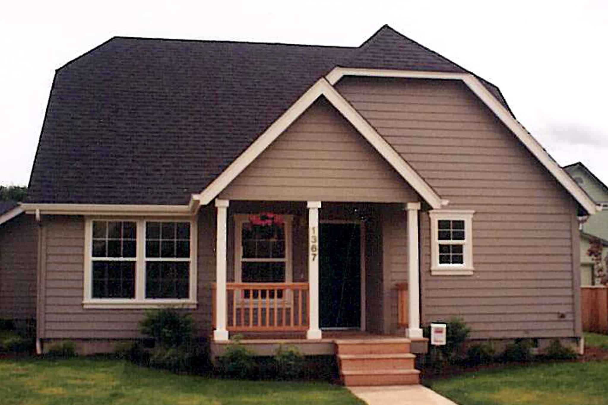 The #108-1487 home plan is a great two story, craftsman style house plan with 1411 total living square feet. This craftsman home plan features eye-catching clipped gables, a covered porch, and multi-paned windows. The living room and dining room flow together right into an open kitchen. This plan also features two and a half bathrooms and three bedrooms, two with the walk-in closets.