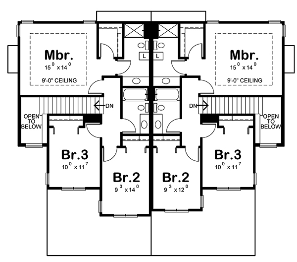 This lovely Traditional style home with Craftsman influences (Multi-Family House Plan #120-2500) has 1418 square feet of living space per unit. The 2 story floor plan includes 3 bedrooms per unit.