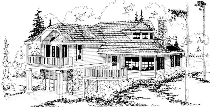 This is a beautiful two story contemporary style house plan with 1434 total living square feet. This is a small, bright contemporary home plan with an elegantly appointed vaulted bedroom. This multi-level plan has a sunroom, sauna, and a bayed great room. It also has two large outdoor living areas plus a wide railed balcony.