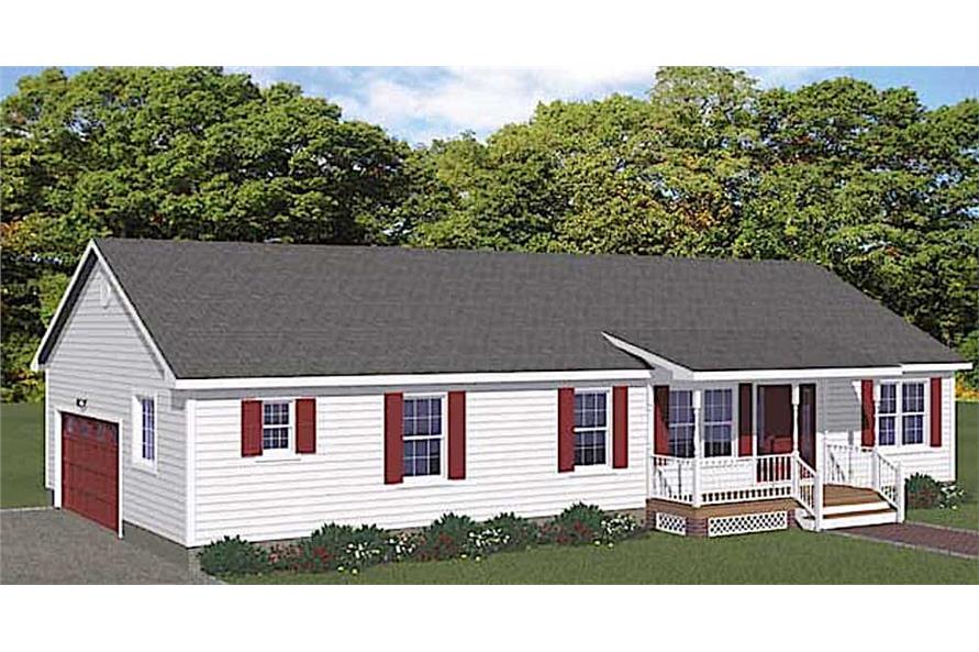 Simple and understated in design in the spirit of form follows function, this wonderful Ranch style house has turned columns at the entry porch that add a country feel to the home. The straight rectangular walls and unadorned gable roof with shed extension to cover the front porch make the house very easy and affordable to build. The inviting 1-story floor plan has 1453 square feet of living space and includes 3 bedrooms and 2 full bathrooms.