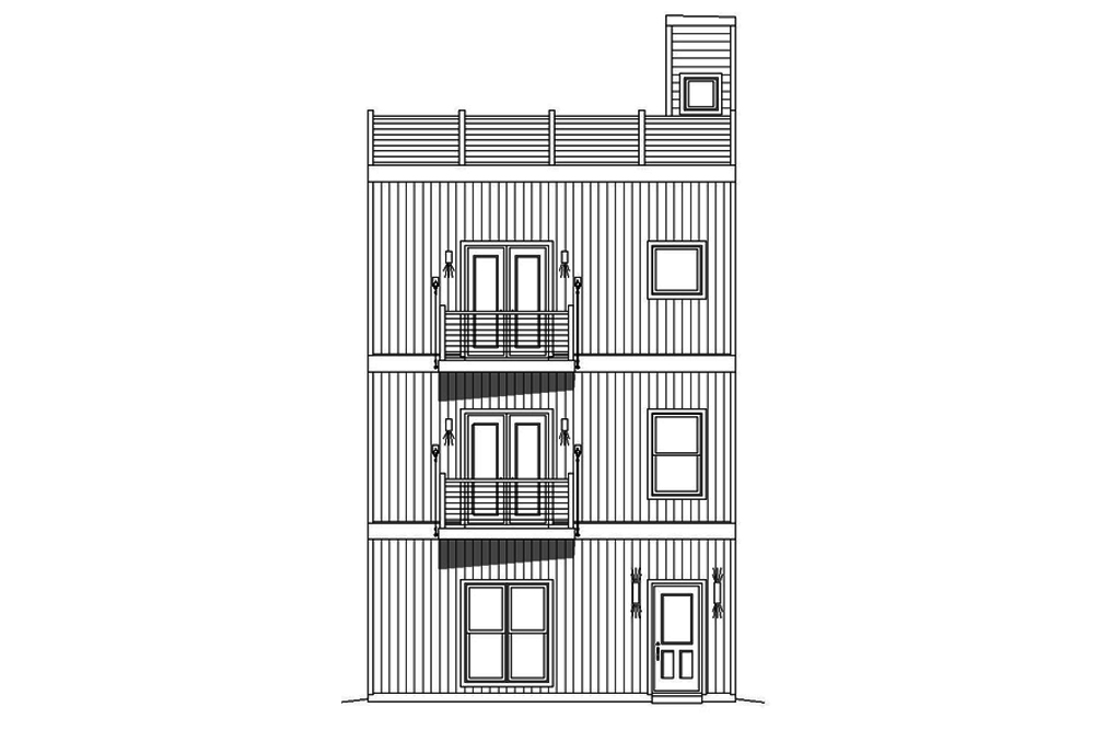 This lovely Modern style home with Contemporary influences (House Plan #196-1082) has 1457 square feet of living space. The 3 story floor plan includes 2 bedrooms.