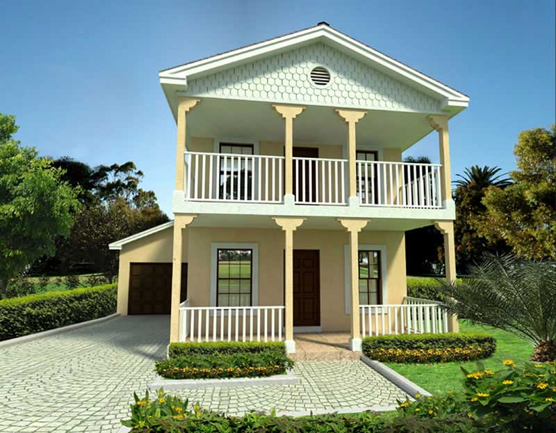 Home Plan #107-1151 is a great two story Mediterranean style home plan with 3 bedrooms, 2 baths, and a 1 car garage. This house plan also has a covered balcony.