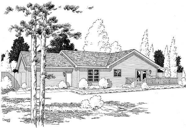A cute covered front porch warmly welcomes you home. The formal living room opens into the dining room, allowing traffic from those important dinner parties to flow easily. A fireplace warms the family room, which also accesses the rear deck. U-shaped counters enhance the kitchens efficiency. An attached private bath and a generous walk-in closet are amenities to the large master bedroom. Two secondary bedrooms share a full bath in the nearby hall. A handy laundry room conveniently sits near all the bedrooms. This home is designed with basement, slab, and crawlspace foundation options.