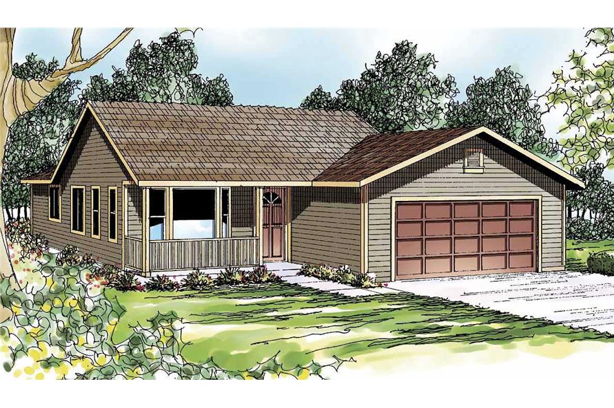 The #108-1191 home plan is a single story, traditional style house plan with 1506 total living square feet. Much deeper than it is wide, this traditional home plan fits neatly on a narrow lot. The vaulted dining room and living room are both fully open to the kitchen and nook. The efficient kitchen has a work island and a pass-through utility which accesses the garage.