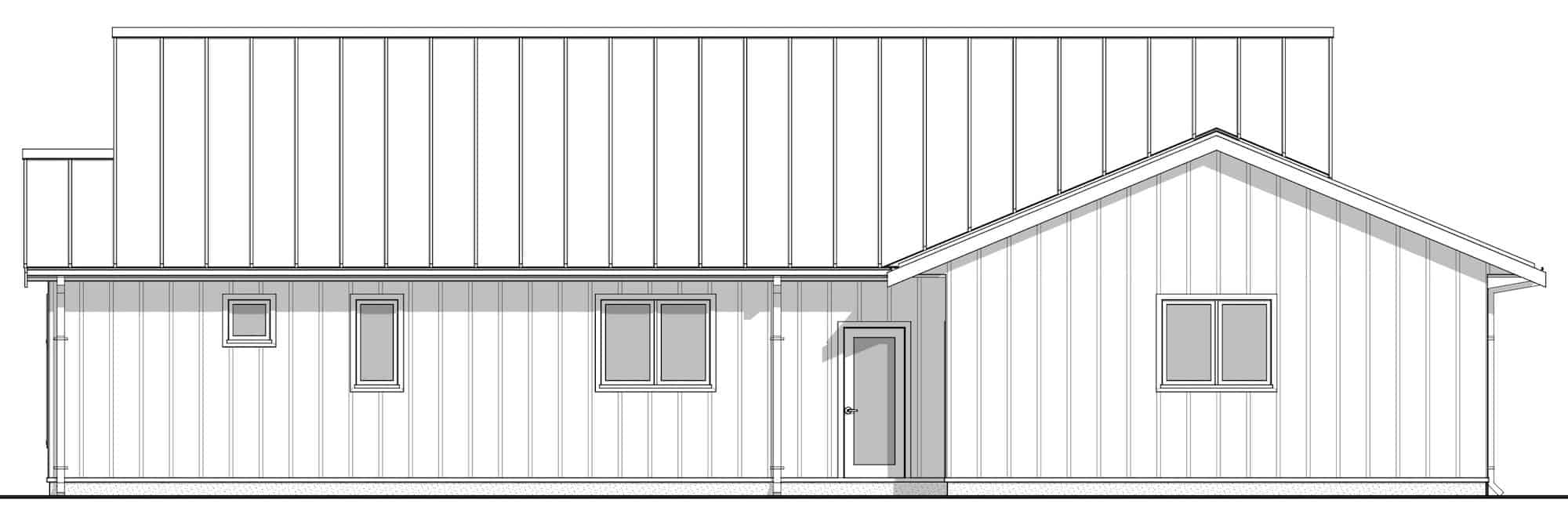 Front elevation of Barndominium Ranch home (ThePlanCollection: House Plan #211-1038)