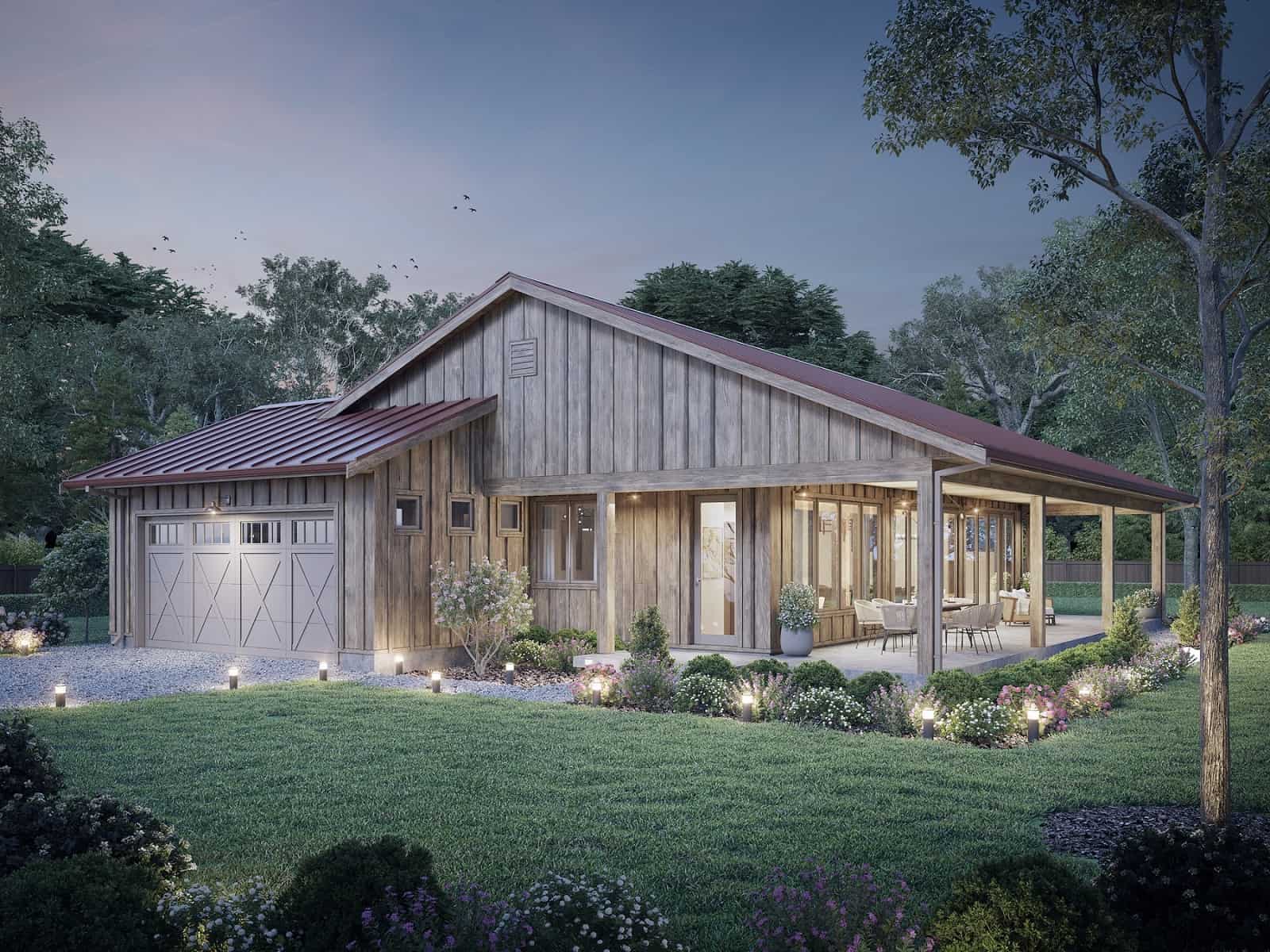 3-Bedroom, 1543 Sq Ft Barndominium Ranch Plan with Wraparound Veranda