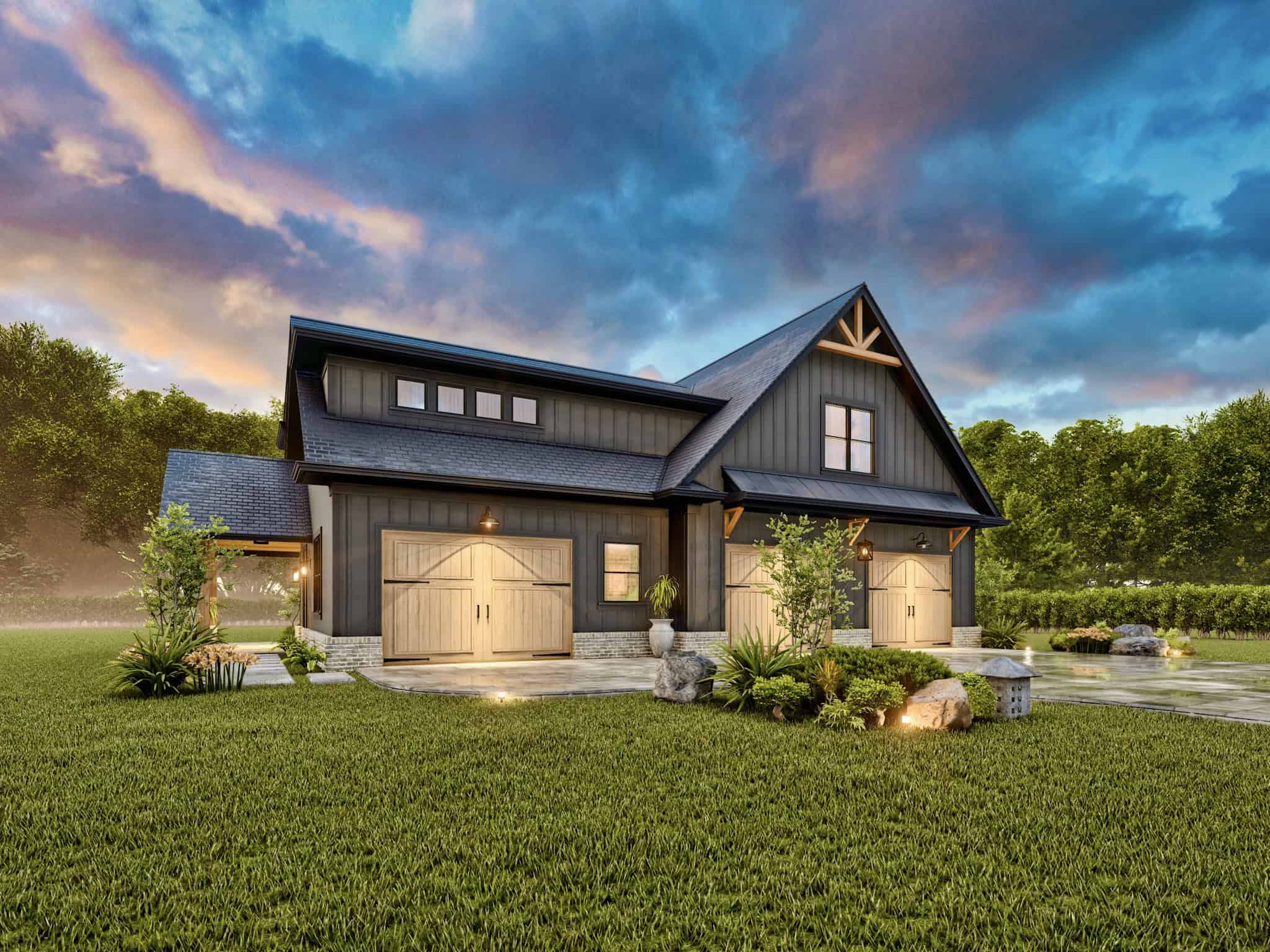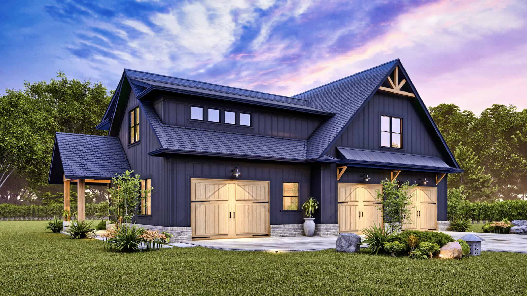 3-Car Modern Farmhouse Garage Plan, 1544 Sq Ft with Breakfast Nook