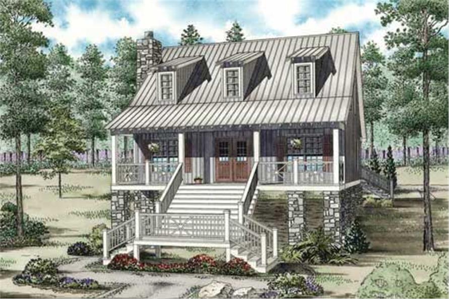 This waterfront vacation home plan comes from the banks of the Mississippi. This features back country swank and a raw charm that brings Tom Sawyer to mind. The main floor enjoys an open floor plan that encourages interaction and fun. The otherwise compact kitchen boasts a rather large kitchen island, doubling it's capacity and capabilities. The bedrooms are kept secluded for optimum privacy. The upper floor is equivalent to a large master suite with a large bedroom, private bath, and large loft.