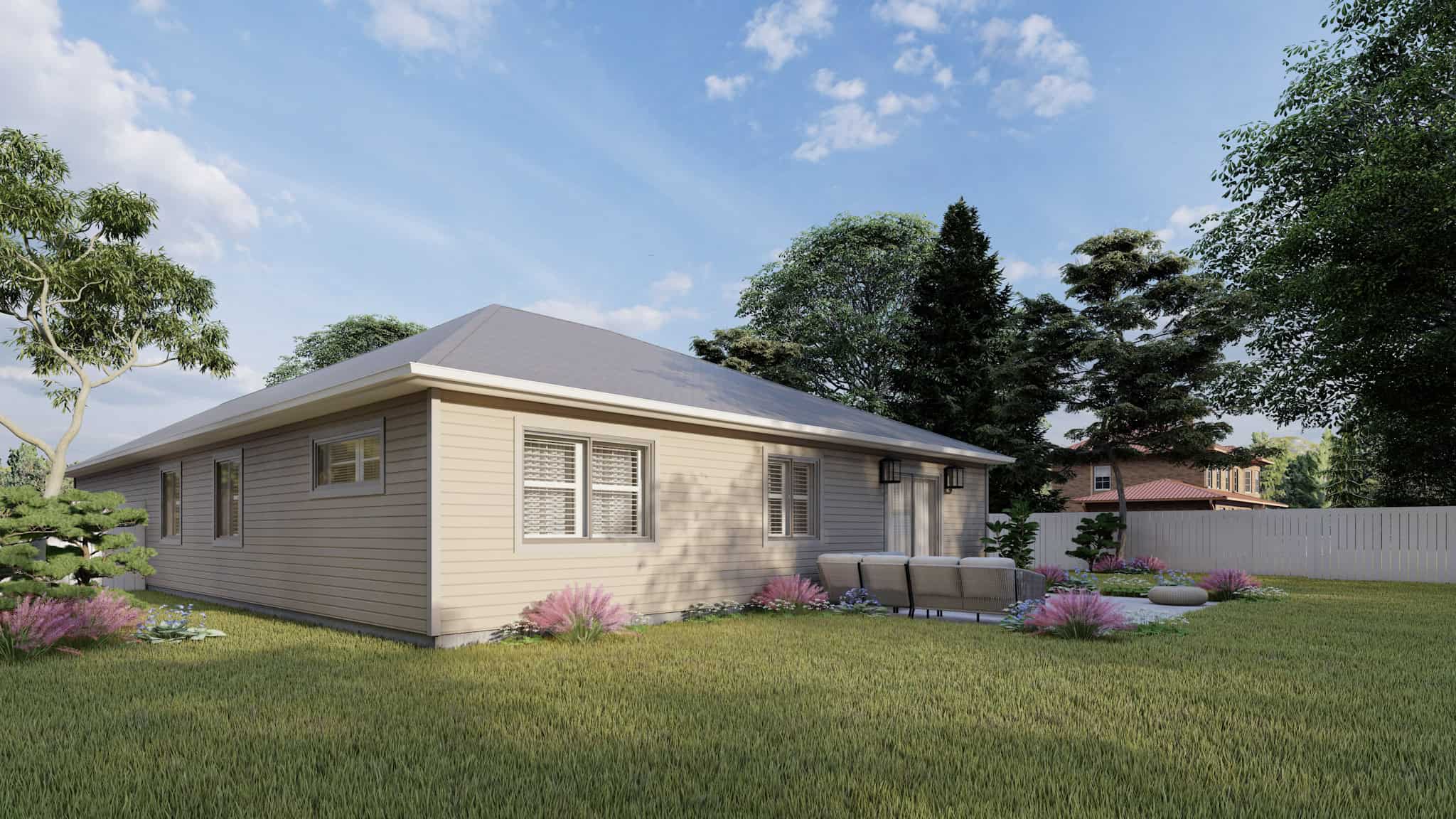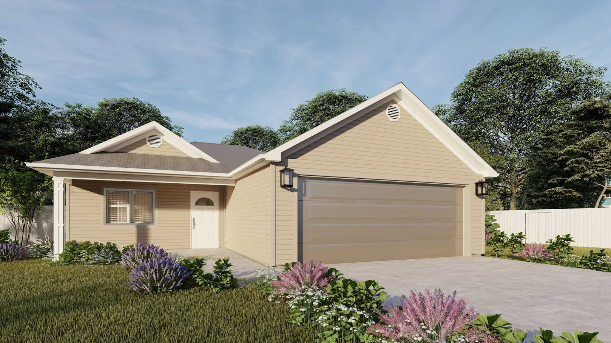 Measuring 1,552 square feet, this Ranch style house plan boasts 3 bedrooms, 2 baths, and a 2-car garage. Brimming with appeal, it offers a delightful combination of elements that exude grace: