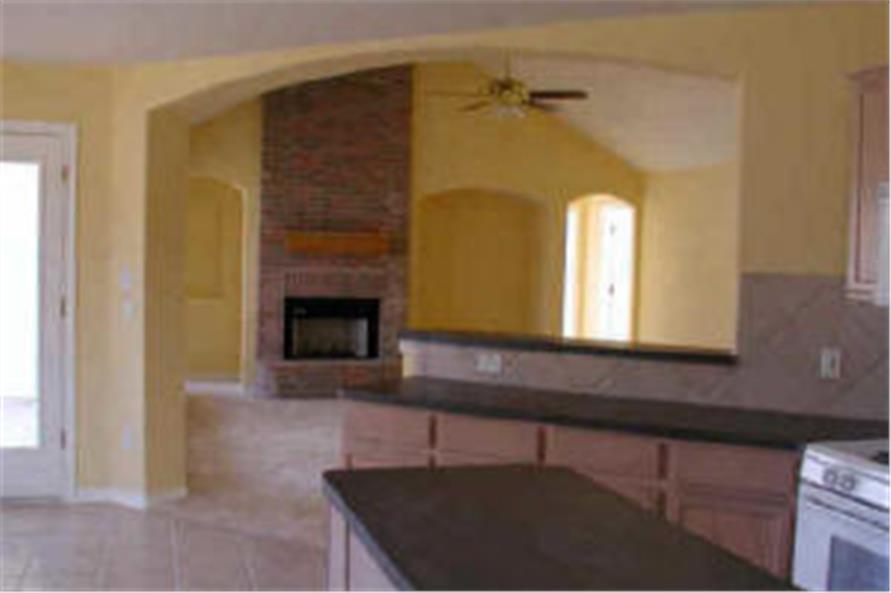 This Texas style home features a cathedral ceiling in the great room, stepped ceilings in the foyer, the dining room and in the master bedroom. A walk-in pantry is adjacent to a kitchen with an island. A study near the foyer can also serve as a third bedroom. Multiple columns, arches, and art niches throughout this plan add unique architectural details. A garage storage area can be modified to expand the utility room or as an access to an optional basement