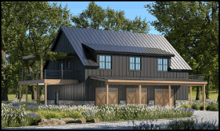 Marked by its Rustic attributes, this garage spans 1,500 square feet and provides generous room for three vehicles. Its adaptable layout makes it suitable for potentially adding extra workshops. Above the garage, there's a completely conditioned living area measuring 1,500 square feet, comprising a bedroom, full bathroom with walk-in closet, kitchen with walk-in pantry, pocket office, and an expansive Family Room.