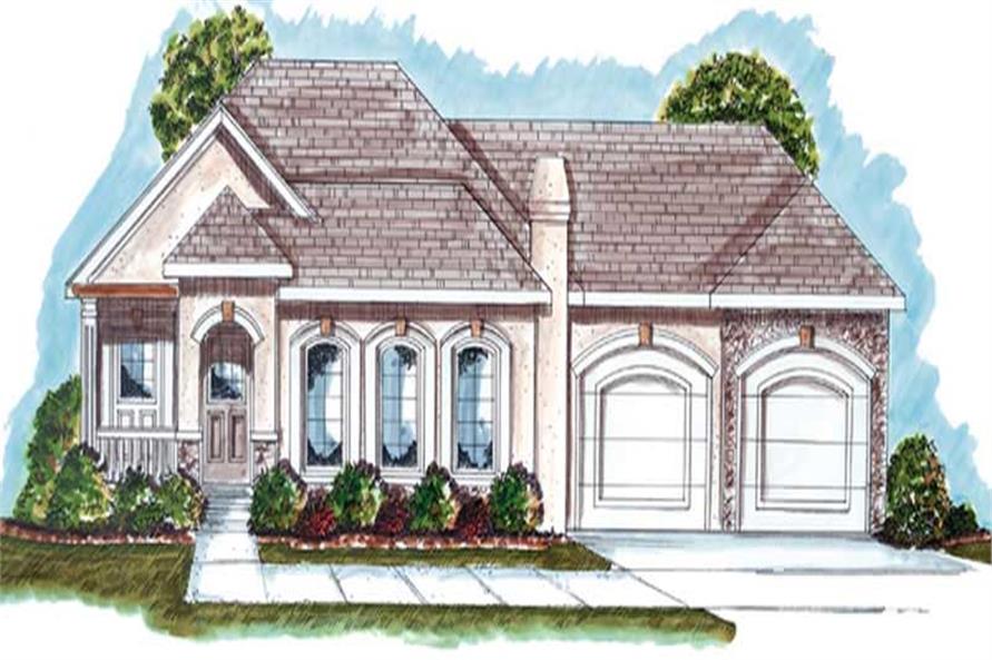 Home Plan #100-1098 is a single story, Mediterranean style house plan with 1586 total living square feet. This plan has 2 bedrooms, 2 bathrooms, and a 2 car garage. This home plan has a courtyard near the dining and living room.