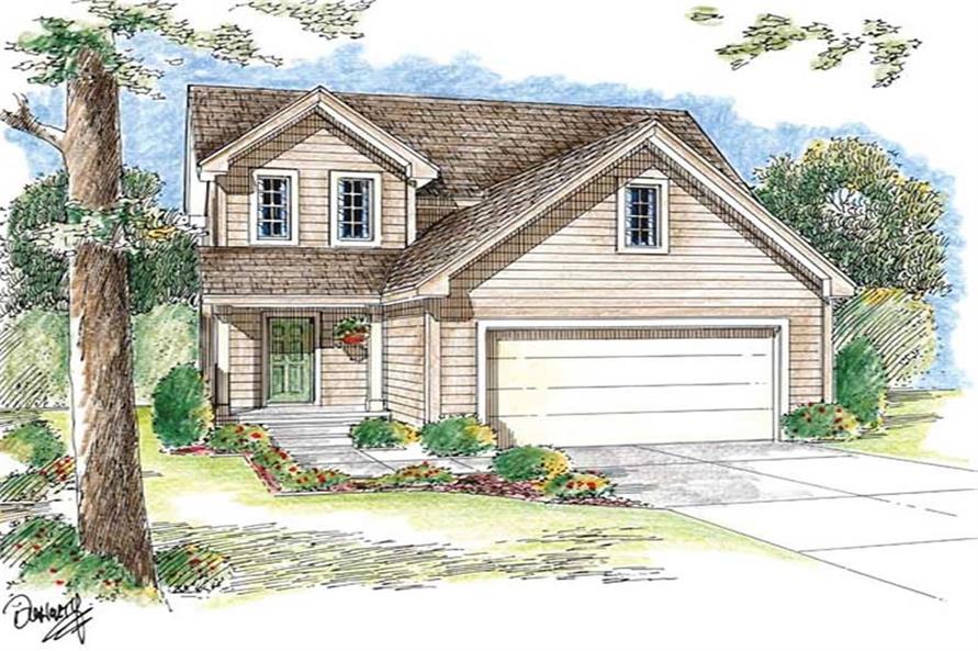 The #100-1072 home plan is a two story, Traditional Style house plan with 1589 total living square feet. This home plan has 3 bedrooms, 2 bathrooms, and a 2 car garage. The main floor plan has the living, dining, and kitchen areas. The upper floor plan has the master bedroom and bath as well as 2 other bedrooms.