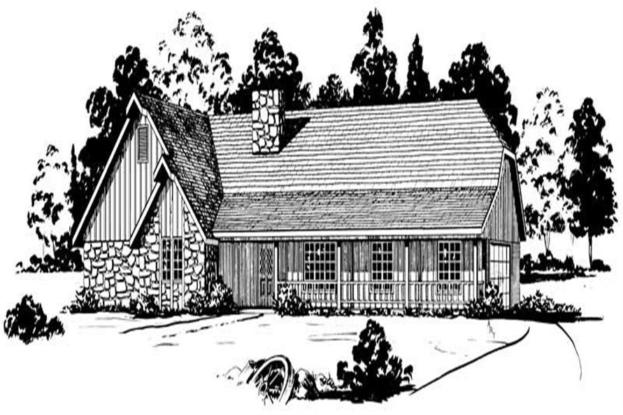 With their low hipped roof and stonework, Ranch Home Plans RG1501 have a very traditional look. Inside the den are decorative ceiling beams, built-in shelves, and a warm fireplace. The Master Bedroom is quite large and has a private bath and a walk-in closet. This house also boasts a wonderful covered front porch.