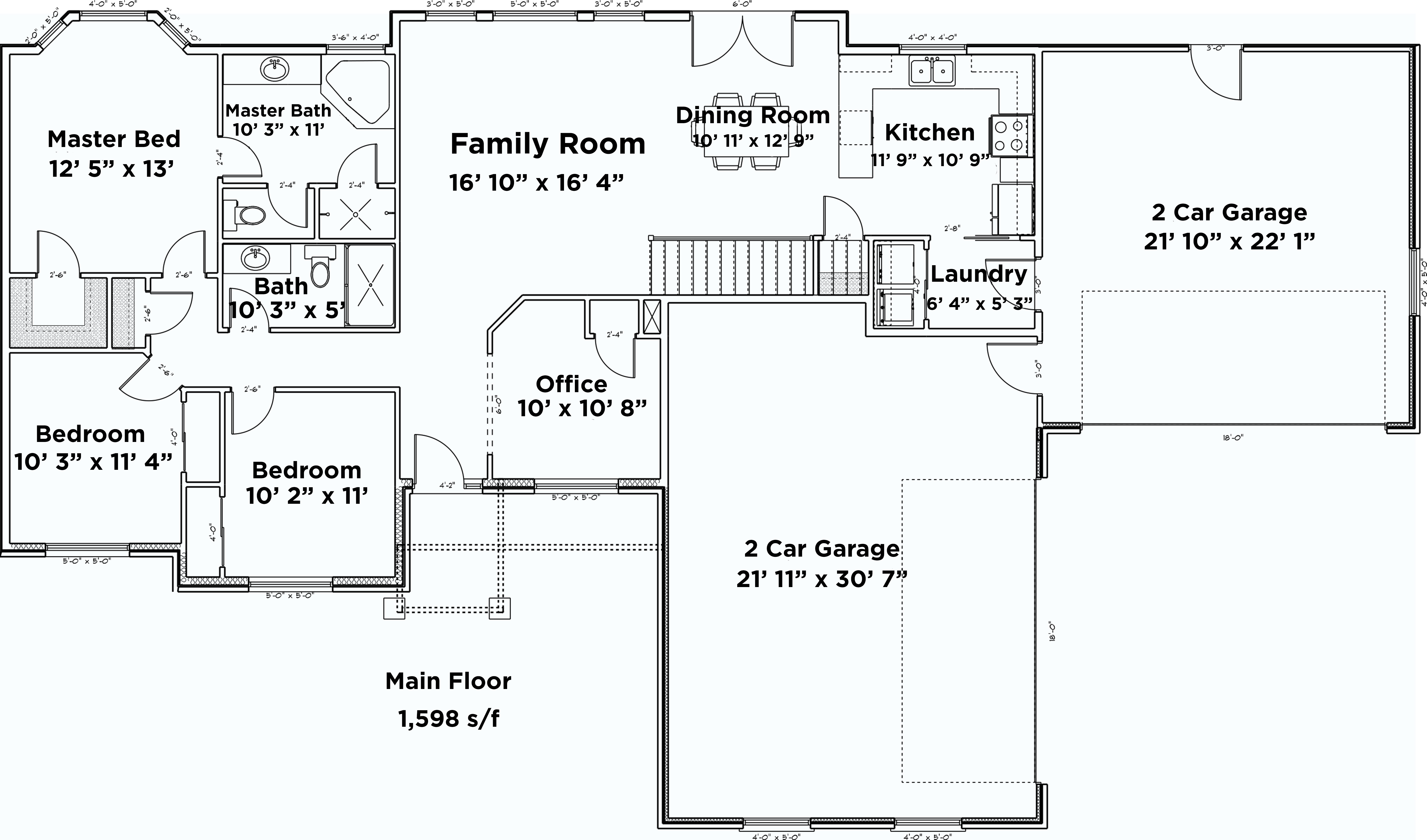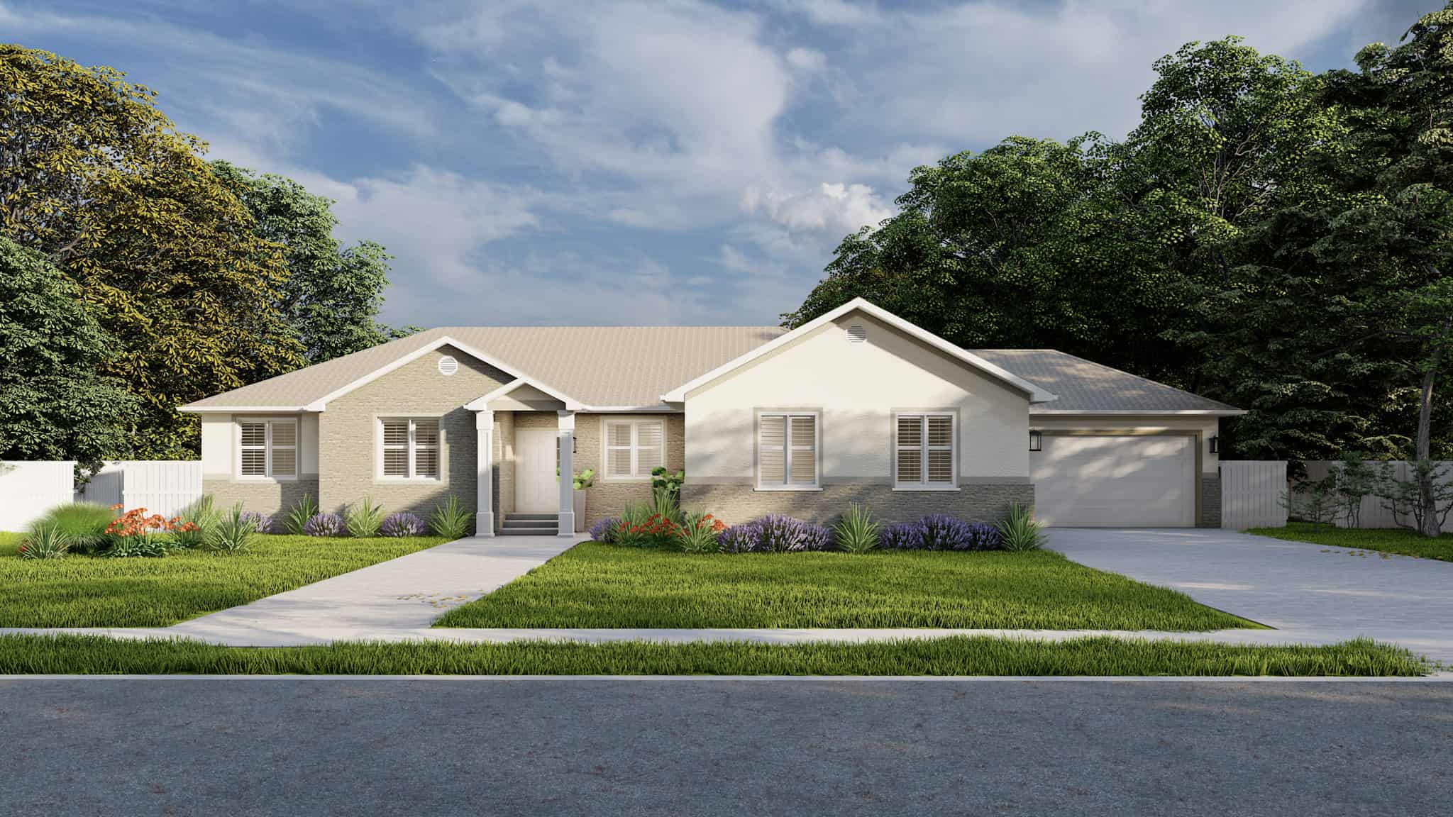 This well-done Craftsman-style country home has 1595 square feet of above grade living space. With the optional finished basement, there are a total of 3134 square feet of conditioned living space if you complete the lower level according to the floor plan. The one story home includes 3–6 bedrooms and 2–3 bathrooms.
