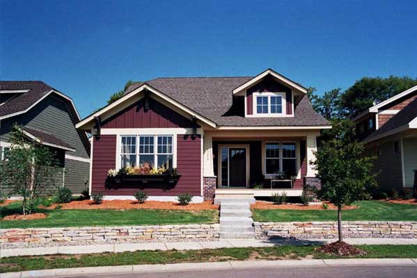 This Bungalow style house is great for a starter home or for empty-nesters. The simple style is very attractive and the compact floor plans give you everything you need. The vaulted family room sports a cozy fireplace and built-in shelves/cabinets. The kitchen is very open and leads out onto a side patio. There is an economic office just off the foyer, and the owners' suite has a private bath and a walk-in closet.