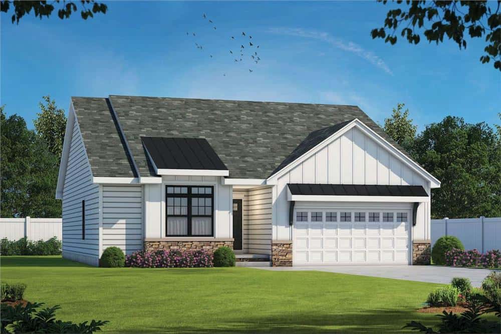 Easy and relaxing living is embodied in this Contemporary Ranch style home, with its calm and homey ambiance. The white vertical siding, stone wainscoting, and metal roofing accent give the house a gorgeous curb appeal. The well-done home's 1-story floor plan has 1603 square feet of heated and cooled living space and includes three bedrooms.