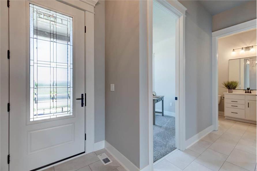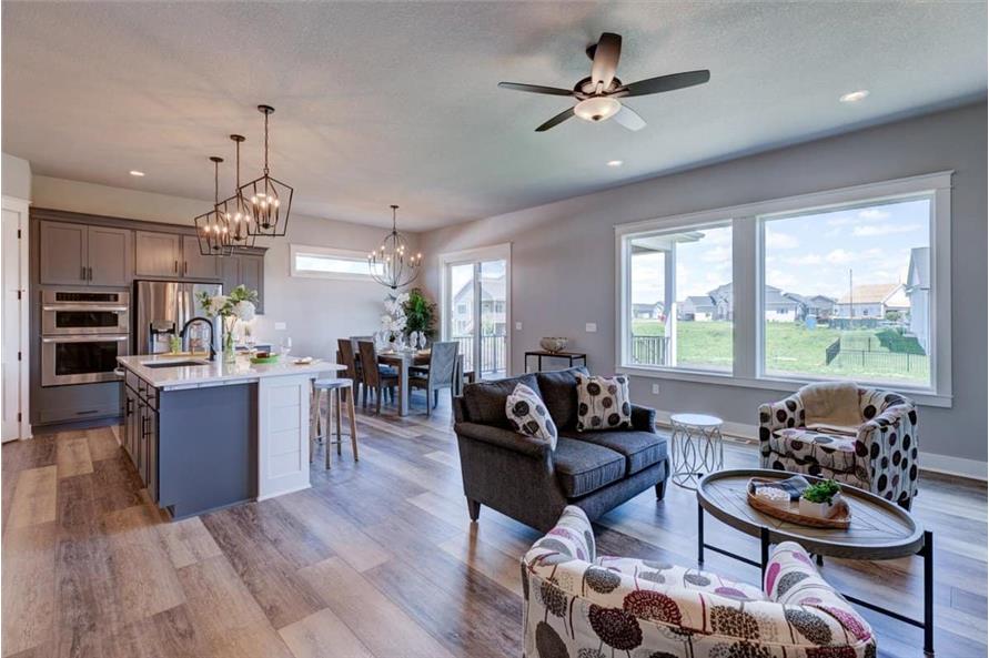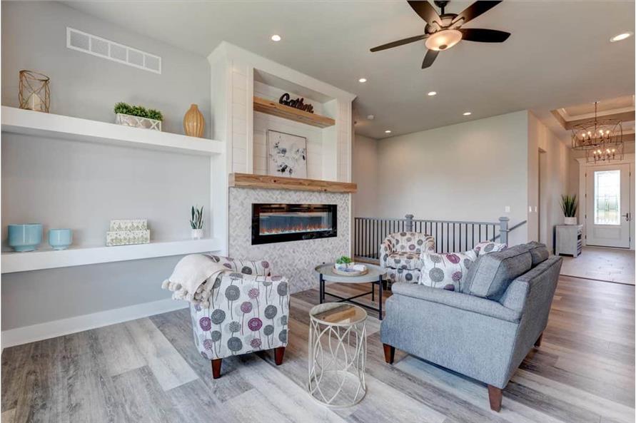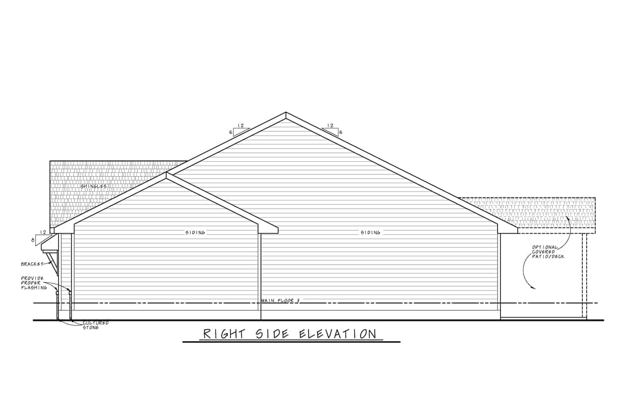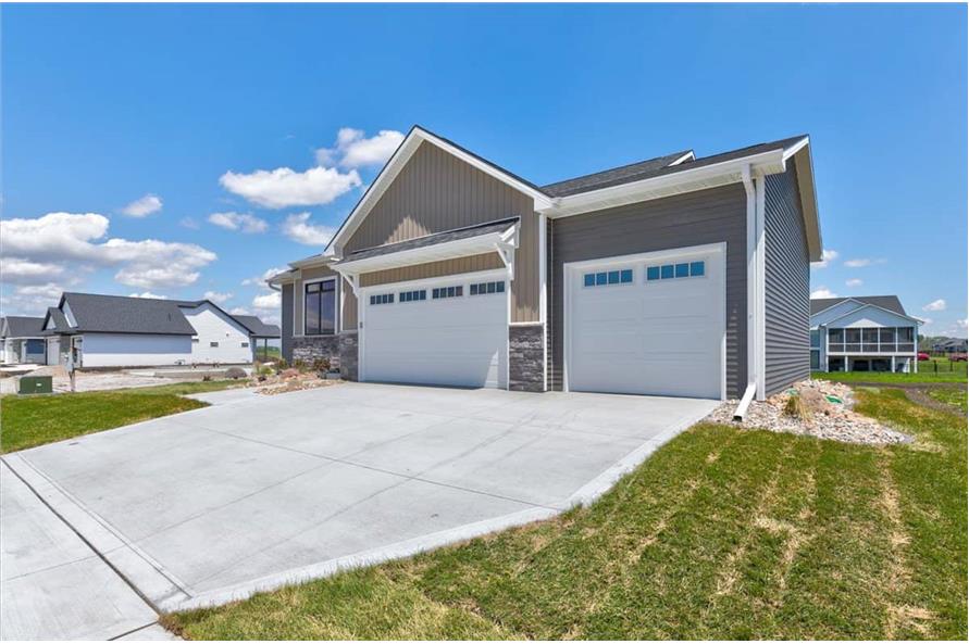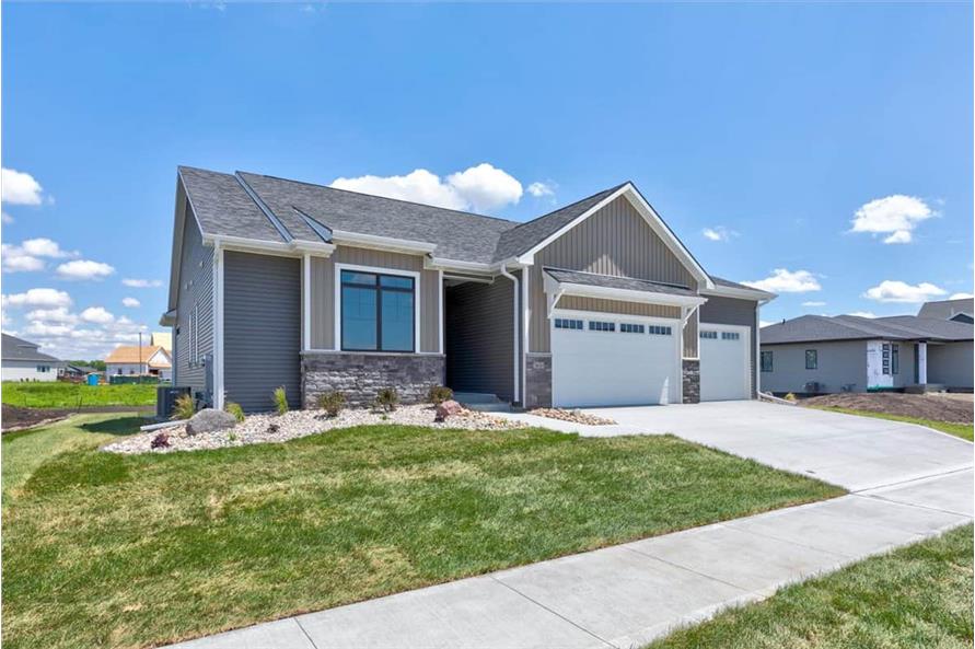 The simple styling of this Ranch Craftsman style home makes it more interesting and inviting. A modest porch, forwarded gable, and vertical sidings combine to enhance the exterior of this house. The house covers a total heated-and-cooled area of 1603 square feet with 736-square-foot 3-car garage.