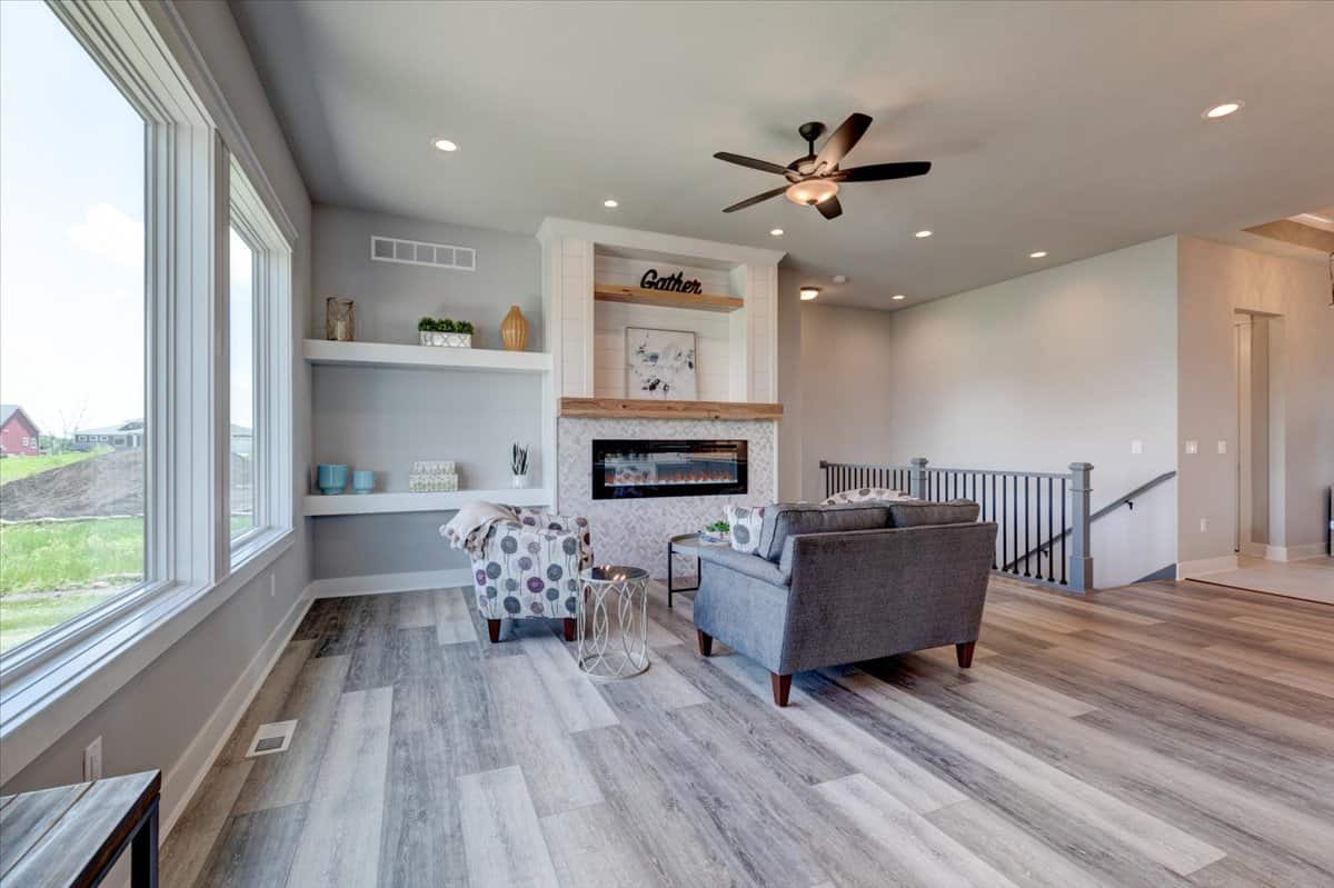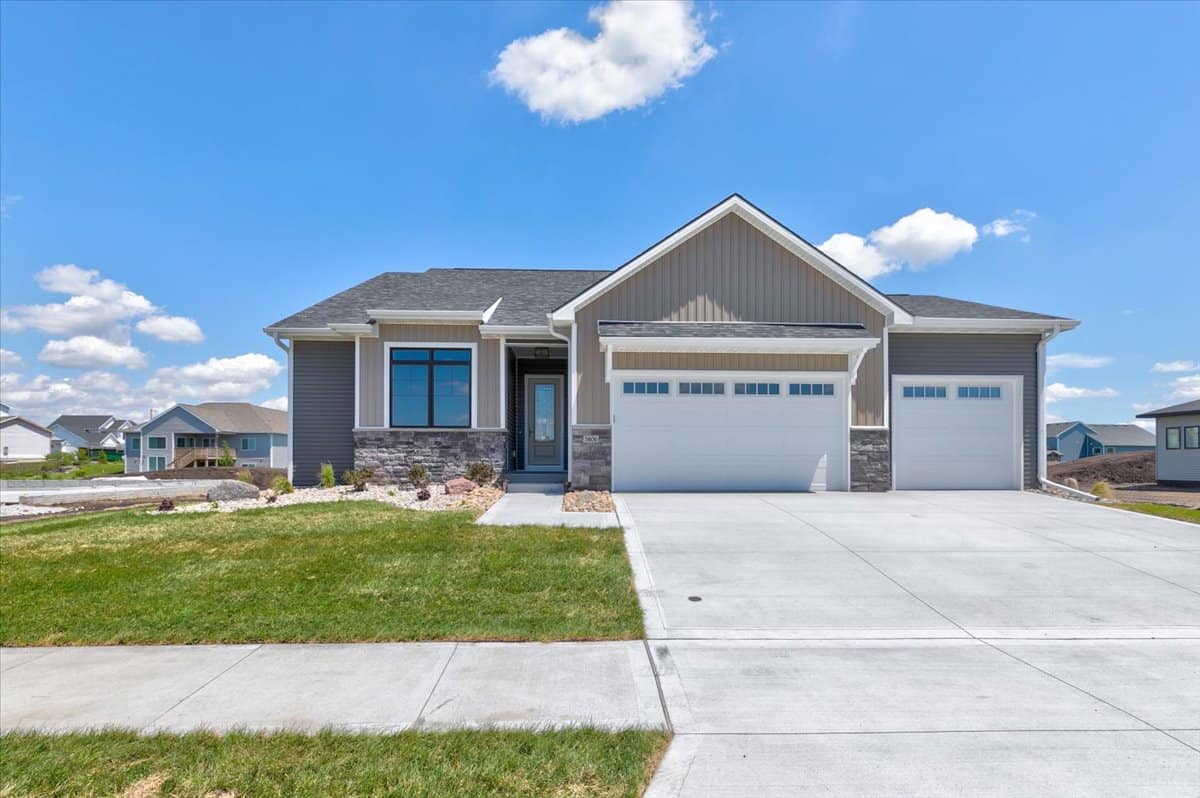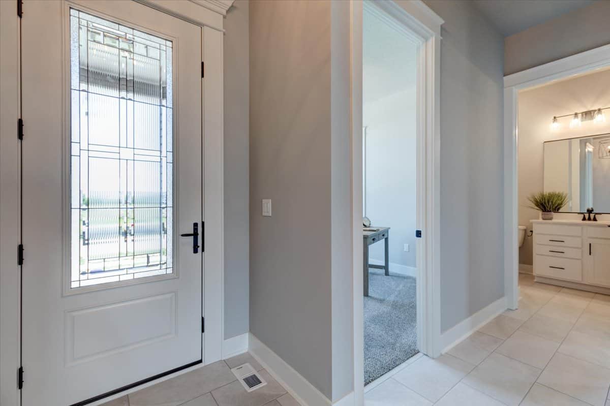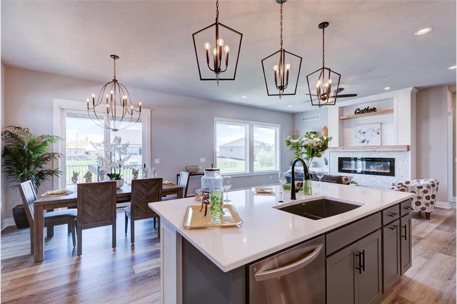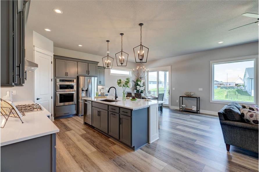 The simple styling of this Ranch Craftsman style home makes it more interesting and inviting. A modest porch, forwarded gable, and vertical sidings combine to enhance the exterior of this house. The house covers a total heated-and-cooled area of 1603 square feet with 736-square-foot 3-car garage.