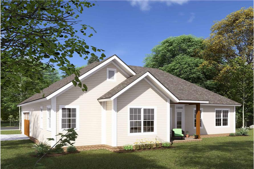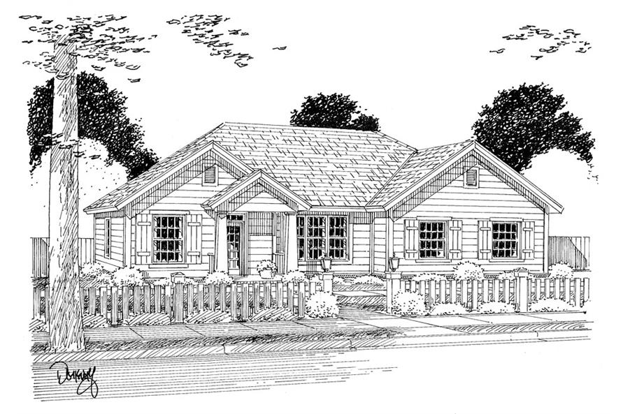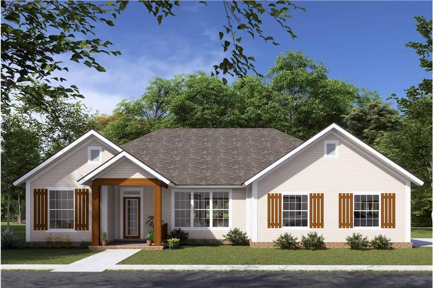 This Traditional-style house plan invites you in with its charming exterior. Enter the home plan from the front porch, and step into the lovely arched foyer, which has storage and access to the private study. Continue into the living room, which is spacious with a built-in fireplace and gives you access to the whole home, The open floor plan allows a seamless flow into the dining room and kitchen. The lovely kitchen is an L-shape design with plenty of counter space and a peninsula with a built-in eating bar. The eating bar overhangs into the spacious dining room, and from there you...