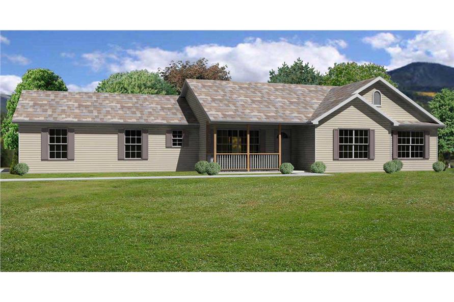 This image shows a front view of these Ranch Home Plans.