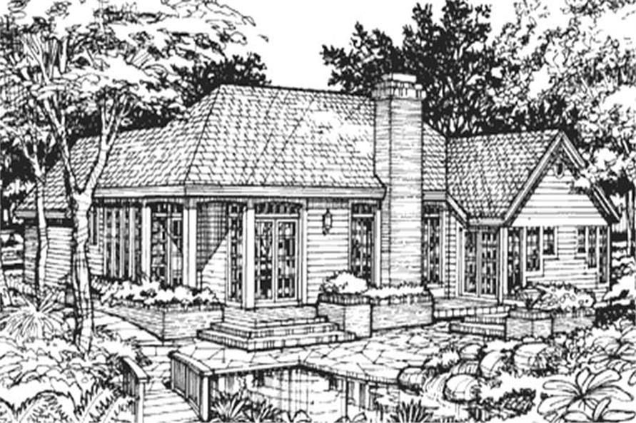 This country house has bright, bold windows and eye-catching masonry details that give this modern one-story home its distinctive look. The vaulted living room, located just past the inviting, light-filled entry, boasts a 13-ft., 8-in. vaulted ceiling. The attractive fireplace, flanked by floor-to-ceiling windows, serves as the focal point of the room. The formal dining room, separated from the living room by columns, accesses a large rear deck through French doors. The modern kitchen includes a sunny breakfast area with access to a covered portion of the rear deck. A convenient laundry room...