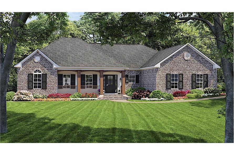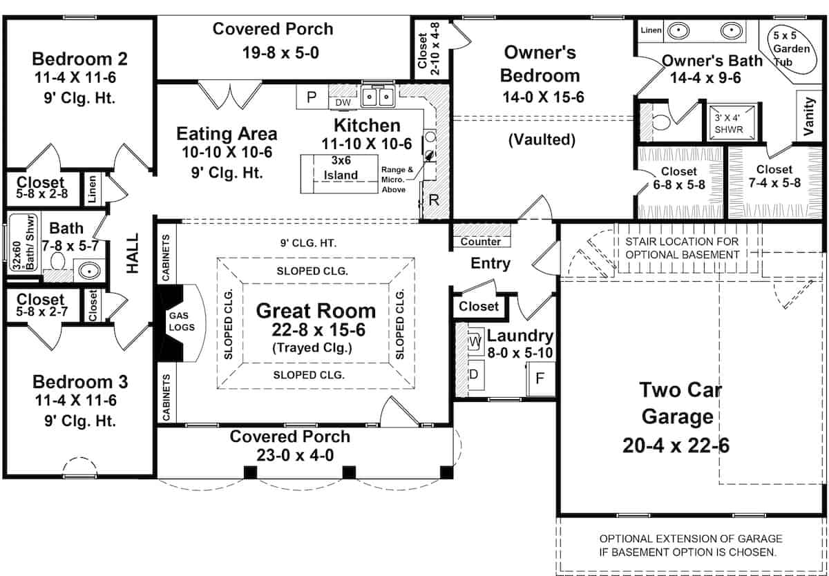 Great ranch split bedroom house plan. Covered front and rear porch. A great Master Bedroom with vaulted ceiling, shoes/valuables extra closet in Master Bedroom, and 2 large walk-in closets. Jet Tub. Separate shower. Compartmented toilet. Separate make-up area. Laundry with freezer space.