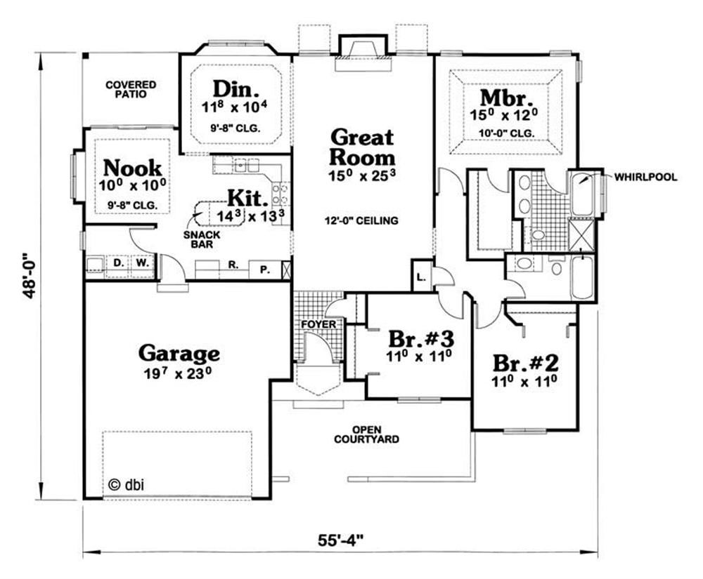 This extraordinary contemporary home with Mediterranean influences (House Plan #120-1082) has over 1660 square feet of living space. The one story floor plan includes 3 bedrooms.