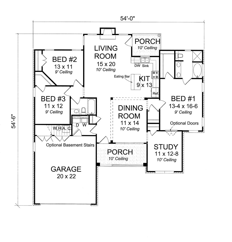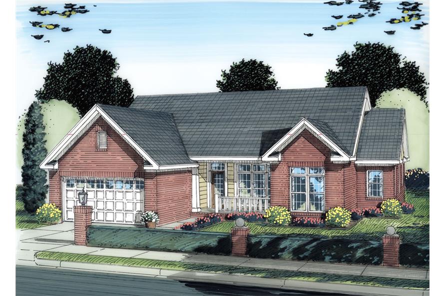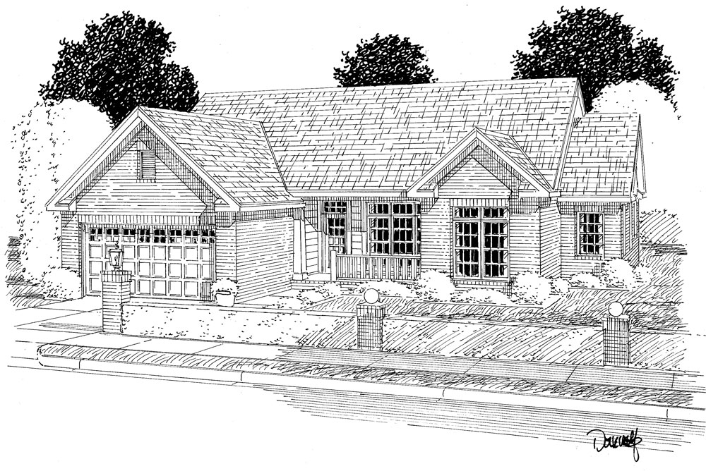 The lovely Ranch-style home plan invites you inside and makes you feel at home. Enter the home from the covered front porch. Once inside, you have direct access to the formal dining room and the main-floor laundry, where you can enter the two-car front-entry garage. From the dining room, you have access to the private study.