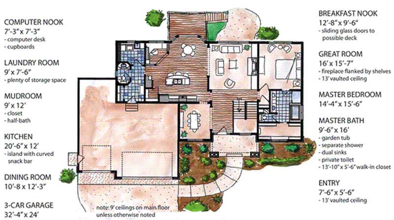 This is the perfect home for an empty-nest couple. All your daily living can be made on the main level, where an open kitchen and a Great Room are the heart of the home. Off the breakfast nook likes a computer center where you can plan meals, pay bills, or surf the Internet. With its large island, the kitchen offers plenty of cabinet space and a step-in pantry for storage. A bay window with sliding glass doors to a back deck is the breakfast nook's defining feature. A fireplace flanked by built-ins warm the adjoining family room. The formal dining room greets guests as they enter the home....