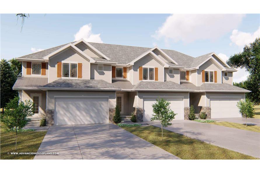 This splendid triplex plan Craftsman influences (Multi-Family House Plan #100-1270) has 1671 living sq ft per unit. The 2-story floor plan includes 3 bedrooms per unit.