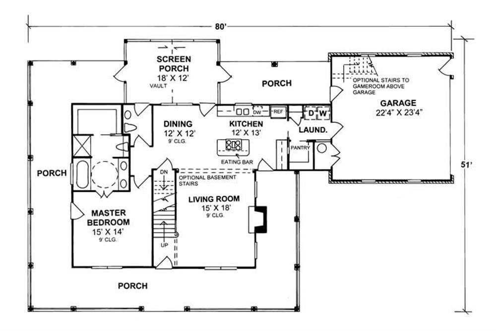 This classic country style house plan boasts a large wrap around porch, side entry garage, open floor plan and an additional screened porch. You'll enjoy lazy summers on the shaded porch from all sides of the home, and enjoy the convenience of a main level master bedroom. Porch Dimensions: - 8' deep all the way around - front of house is 35' wide - right front 18'6 - right side 31' - left rear around 8' - behind kitchen is 21' Approximate total porch SF is 1117.