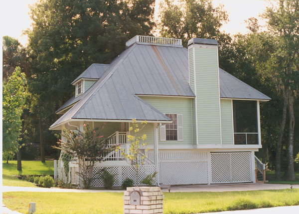 This lovely Bungalow style home with Florida Style influences (House Plan #190-1001) has 1679 square feet of living space. The two story floor plan includes three bedrooms.