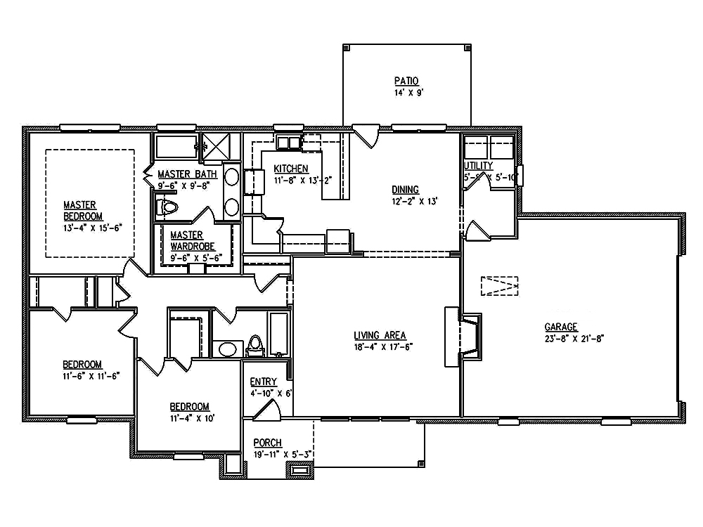 This delightful Traditional style home plan with Ranch influences (House Plan #199-1010) has 1694 square feet of living space. The 1 story floor plan includes 3 bedrooms.