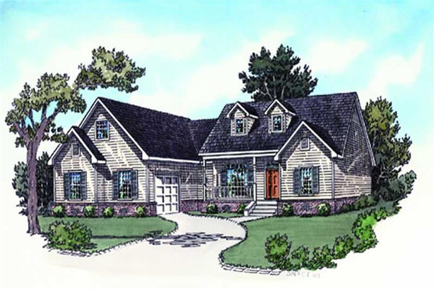 This Country design is a mix on the usual straight floor plan. This has an L shaped footprint with a courtyard garage. There are two dormers above the front porch. There is a bonus room above the garage of this plan.