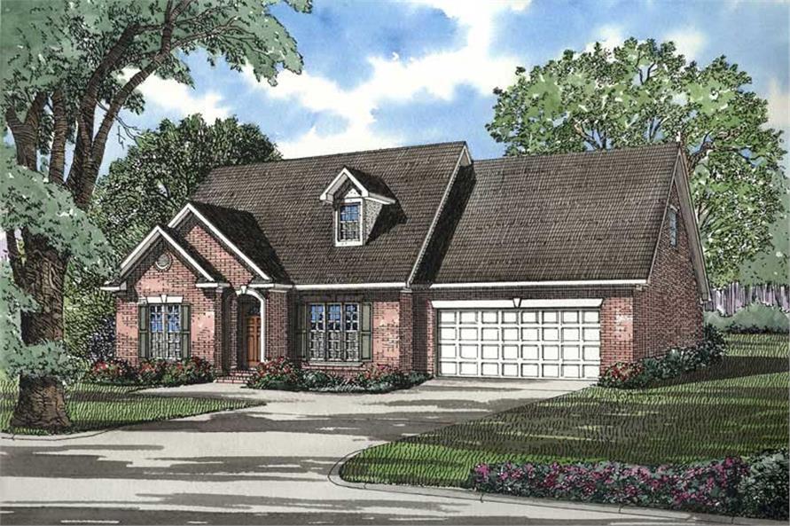 This attractive French-influenced home (Plan #153-1242) enjoys an traditional exterior with a modern interior floor plan. Step in from the portico into the great room with its impressive fireplace and columns setting off the entryway to the dining room and open concept kitchen.