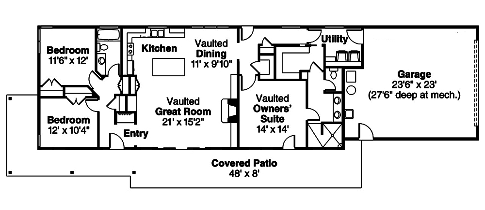 This lovely Contemporary style home with Ranch influences (House Plan #108-1840) has 1700 square feet of living space. The 1 story floor plan includes 3 bedrooms.
