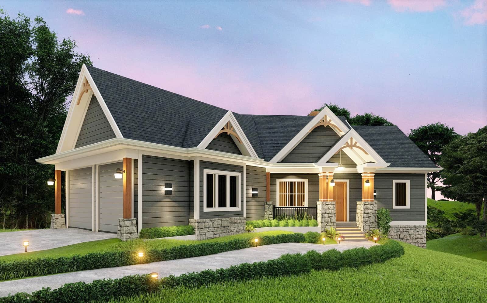 This lovely Cottage style home with Farmhouse influences (House Plan #198-1056) has 1729 square feet of living space. The 1 story floor plan includes 3 bedrooms.