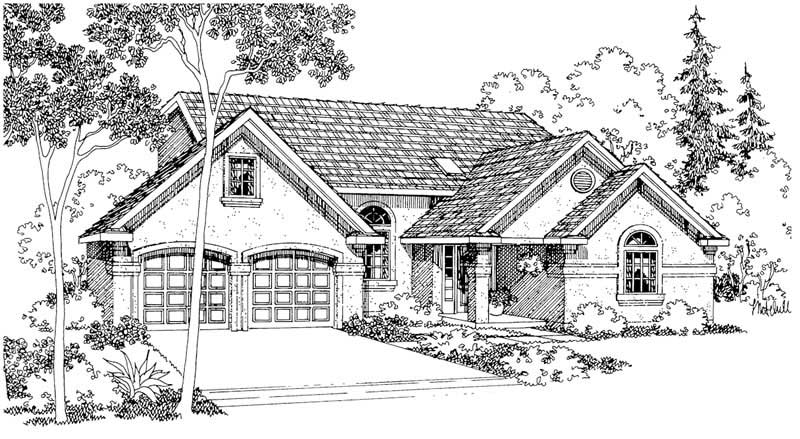The #108-1241 home plan is a two story, southwestern style house plan with 1750 total living square feet. This southwestern home plan features a loft by the vaulted master suite that overlooks the vaulted family/dining rooms. The kitchen has an eating bar, nearby utility, and is open to the dining room. The master suite has a privacy, a large walk-in closet, and a two-section bathroom.