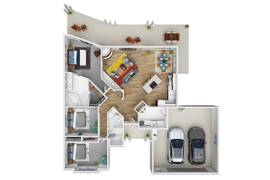 Occupying 1,760 square feet, this Southwest style house plan includes 3 bedrooms, 2 baths, and a 2-car garage. Imbued with enchantment, it features a delightful mix of elements, embodying refinement throughout: