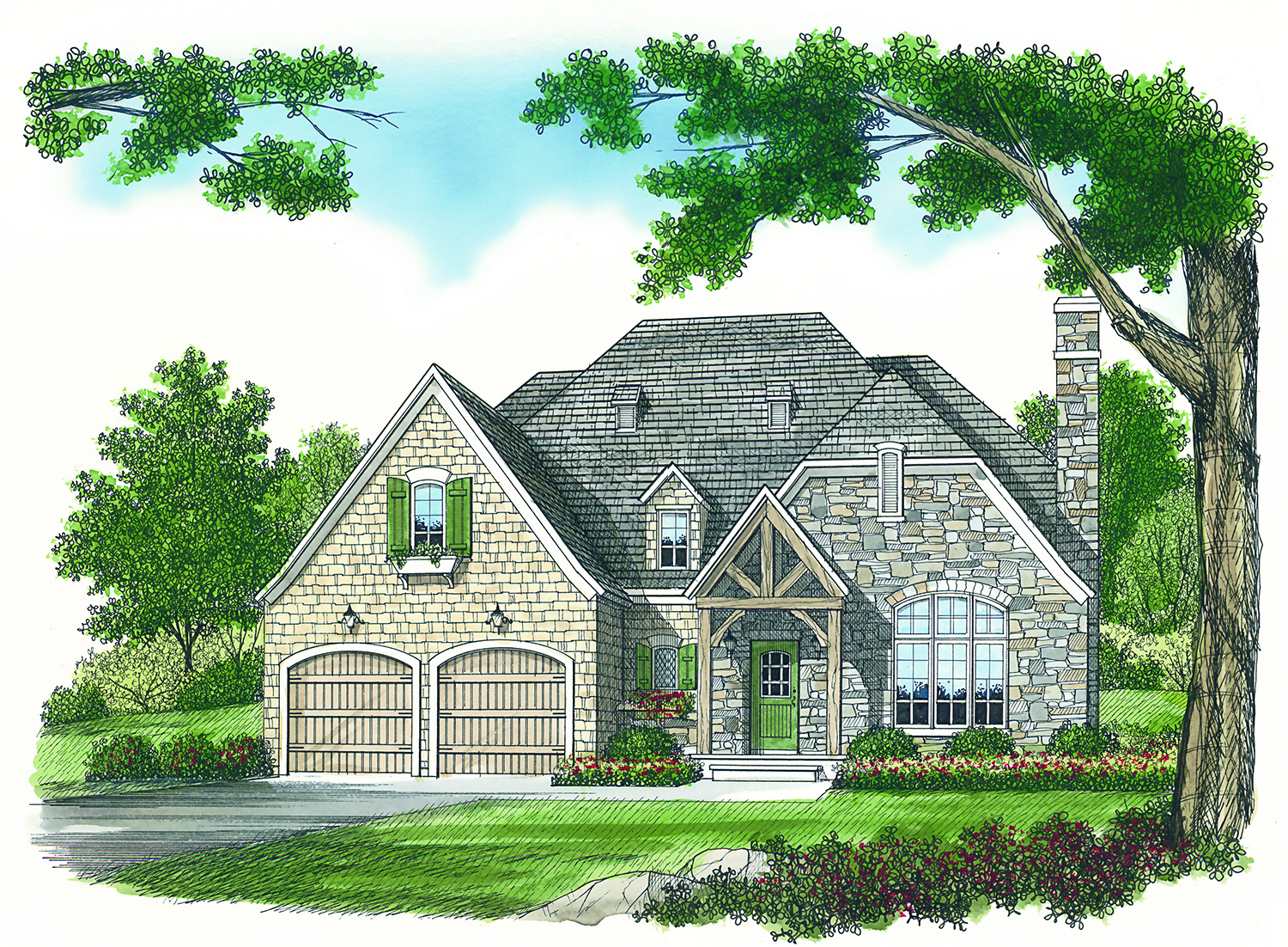 This lovely French country style home (House Plan #180-1005) has 1779 square feet of living space. The 2 story floor plan includes 3 bedrooms.