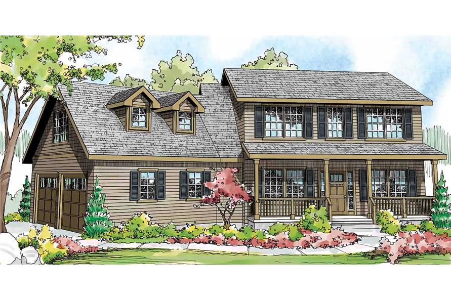 Country home plans. Bright, expansive gathering spaces fill most of this country cottage home plan's main floor. The living room, dining area and kitchen flow together. The den is also linked, but could be more fully enclosed, if a home office is needed. Cabinets and built-in appliances wrap around four sides of the spacious kitchen, mere steps away from a utility room and half bath. Two stories, shutter-flanked windows, and a railed front porch give the #108-1507 the comfortably familiar look of a nostalgic country cottage. This home is designed for construction on a lot that slopes...