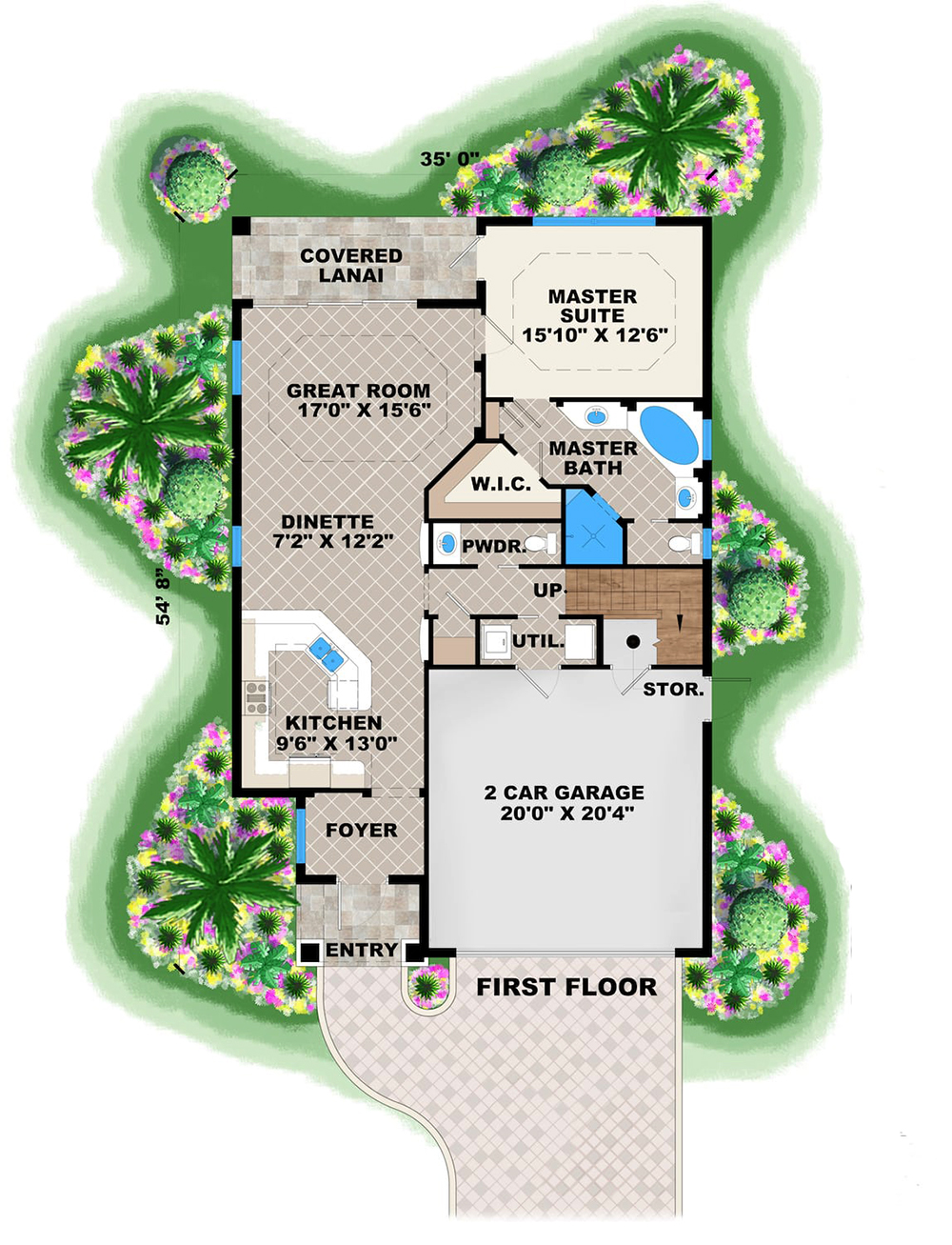 This lovely Mediterranean style home with Spanish influences (House Plan #175-1263) has 1787 square feet of living space. The 2 story floor plan includes 3 bedrooms.