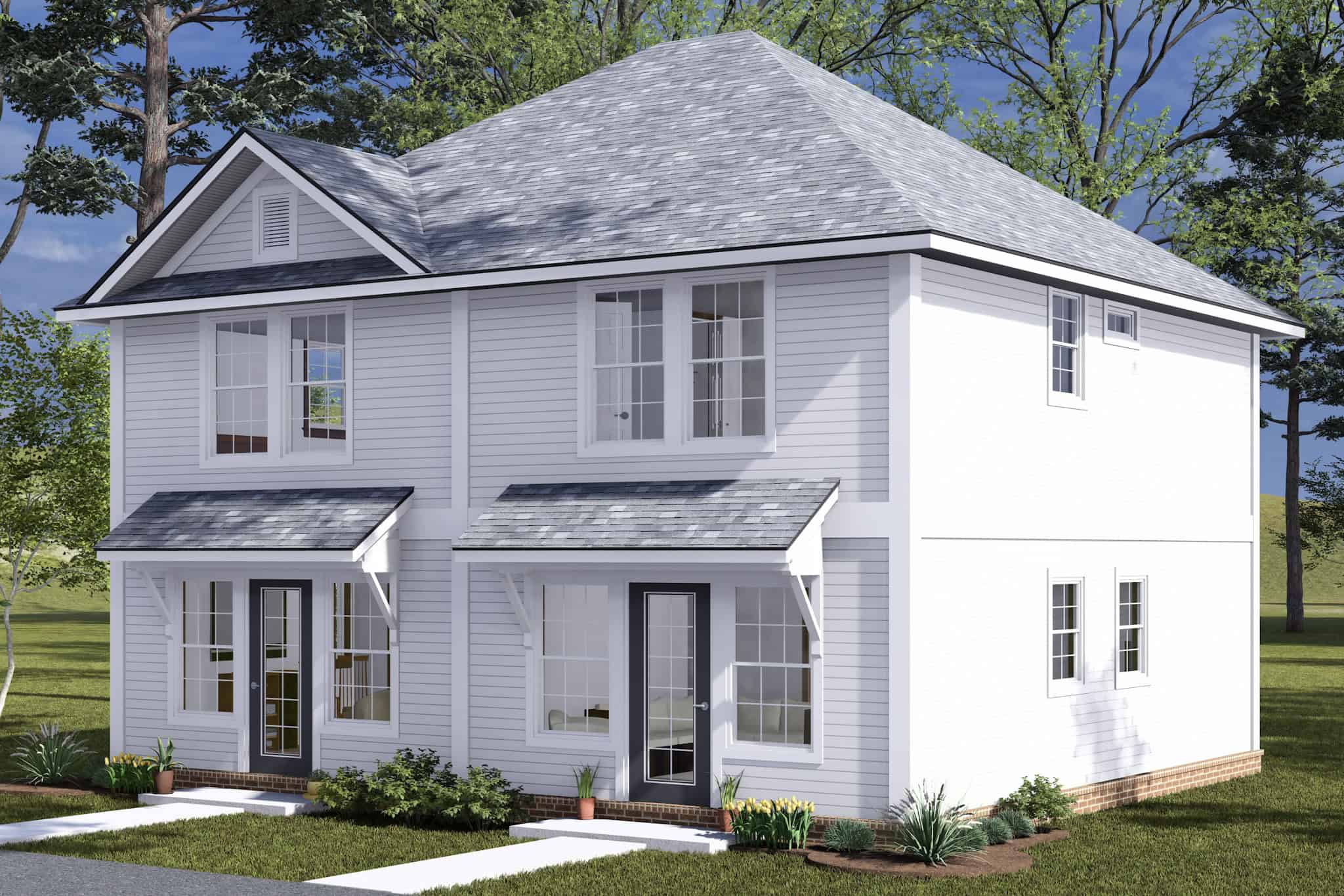 This 2-unit Cottage style house plan exemplifies a significant achievement in architectural design, reflecting both elegance and authenticity, creating a perfect family environment. The 2-story layout offers 1,792 living sq ft (896 living sq ft per unit) and boasts a wide range of quality amenities: