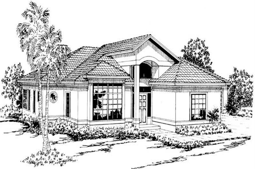 The #108-1326 house plan is a single story, Mediterranean style house plan with 1796 total living square feet. #108-1326 is a Mediterranean home plan with tile roof and a lofty columned entrance. The wide, sunny screened porch spans the entire rear facade. The large kitchen is open to the vaulted great room and nook.